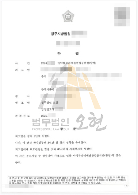 ÀÇ·ÚÀÎÀº °ú°Å ¸¶¾à·ù°ü¸®¹ý À§¹Ý ÇøÀǷΠ¡¿ª 6°³¿ù, ÁýÇàÀ¯¿¹ 1³âÀ» ¼±°í¹Þ¾Æ ÆÇ°áÀÌ È®Á¤µÈ »óÅ¿¡¼, ÇÕ¼º´ë¸¶¸¦ ¼ö¼ö ¹× ÈíÀÔÇß´Ù´Â ÇøÀÇ·Î Ãß°¡ ±â¼ÒµÈ »ç°ÇÀ̾ú½À´Ï´Ù.